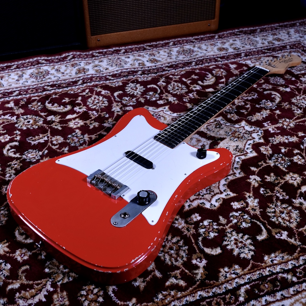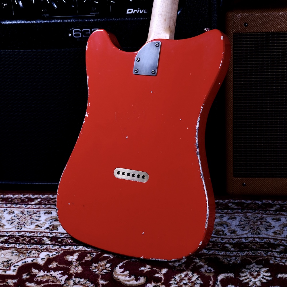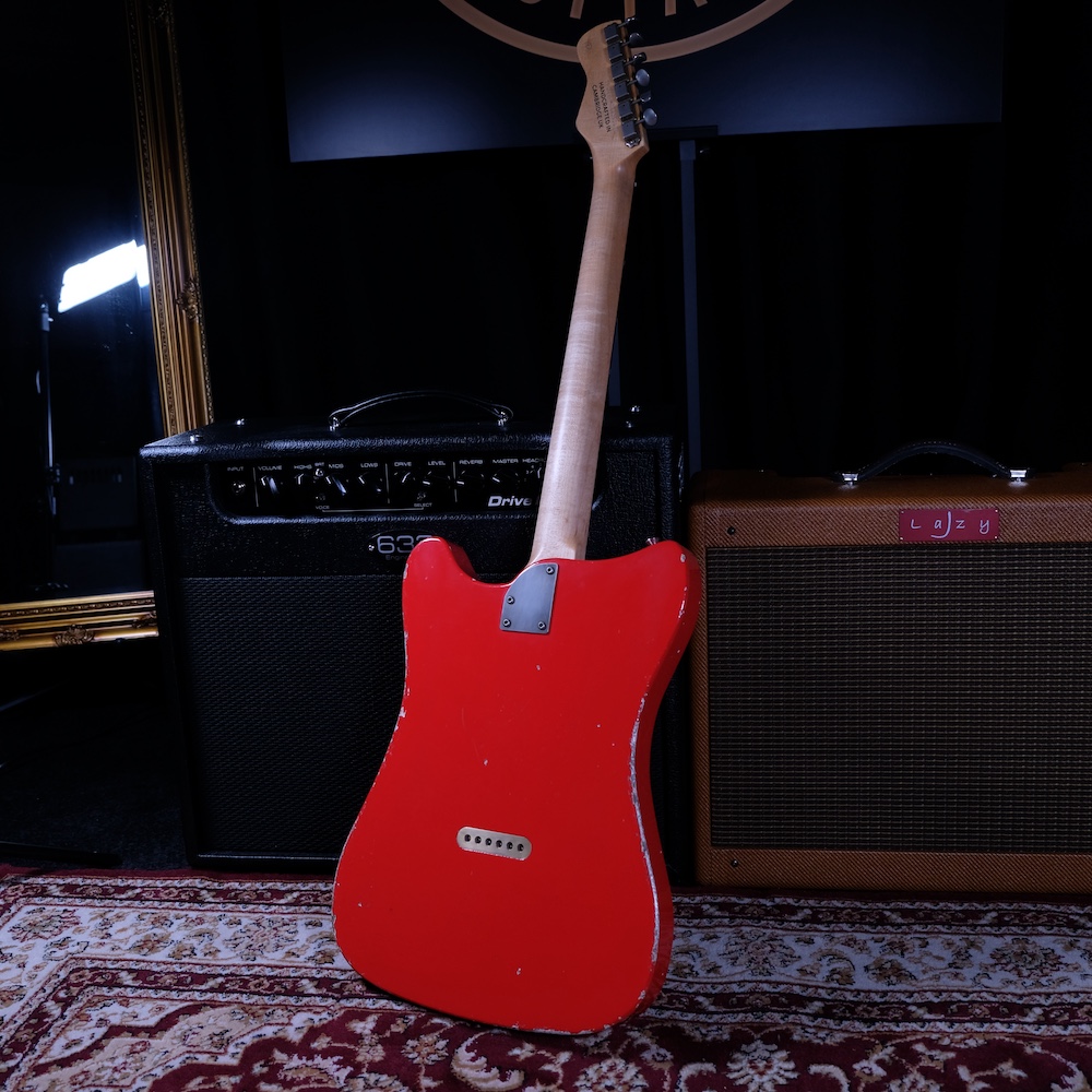 This example features a solid obeche body, chosen for its lightweight feel and balanced tonal response, finished in bold Torino Red with light-to-medium ageing. A German carve along the top edge adds subtle definition, while the clean, minimal layout keeps the emphasis firmly on the instrument itself.